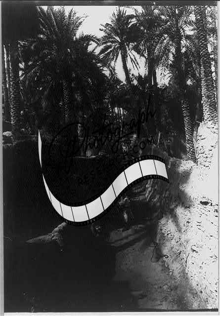 Oasis draw well at Al-gowf,Arabia,Africa,Desert,palm trees,c1910