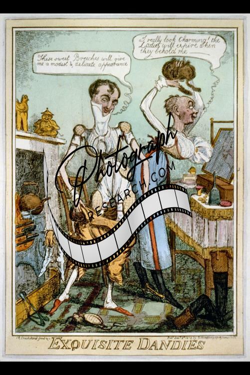 Exquisite dandies,1818,Caricature,men of the Regency,dressing in female costumes