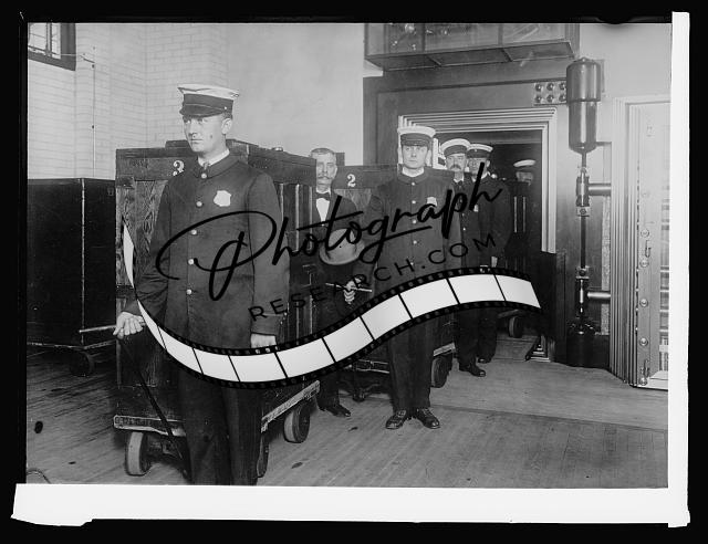 Title: Bureau Engraving & Printing money section of Examining division vault. Approximately 750,000,000 of partially completed money etc. stored in this vault when photographed, [1914]