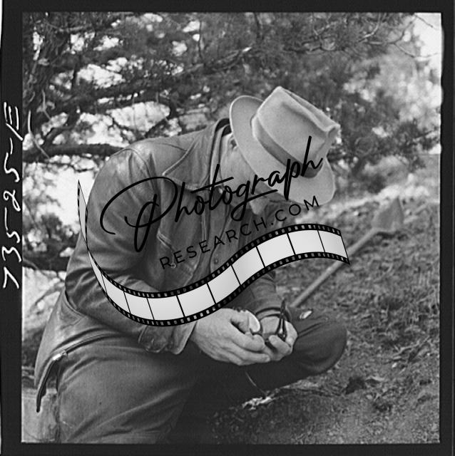 Title: Grant County, Oregon. Bureau of Mines representative taking bearing on angle of diamond drilling for chrome ore deposits