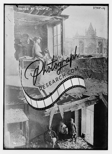 House at Rheims,damage,rubble,family,pet dogs,boy,Bain News Service,France