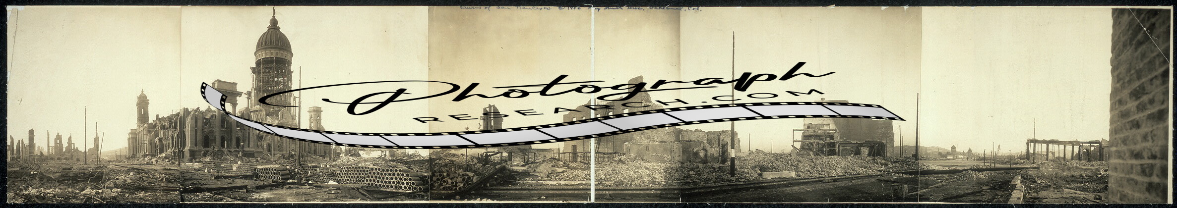 1906 Panoramic: Ruins of San Francisco after earthquake,fire,Stanford Mansion