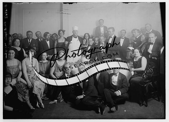 Chaliapin meeting,dinner,chefs,tables,food,men,women,chairs,Bain News Service