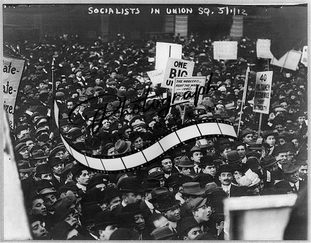 Socialists in Union Square,New York City,N.Y.C.,large crowd,May 1,1912,signs