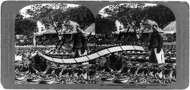 Photo of Stereograph,Chinese Strawberry Garden,Proprietor,Coolie,China,c1902