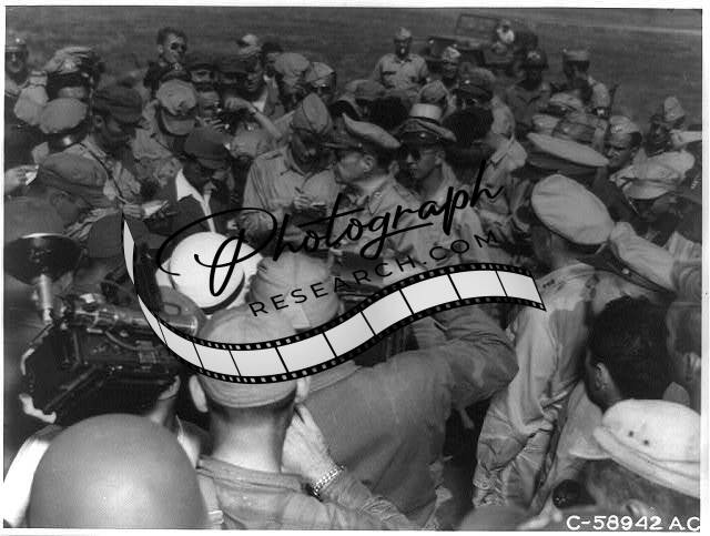 General Douglas MacArthur,met,photographers,reporters,arrival,Atsugi,Japan,1945