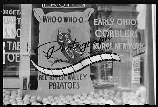 Grocery store window,Dubuque,Iowa,IA,April 1940,John Vachon,FSA,Cobblers