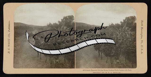 Greek Peasants Driving Home Donkey-Packs Laden with Fuel