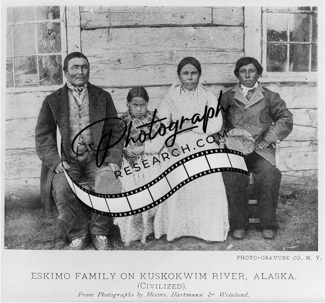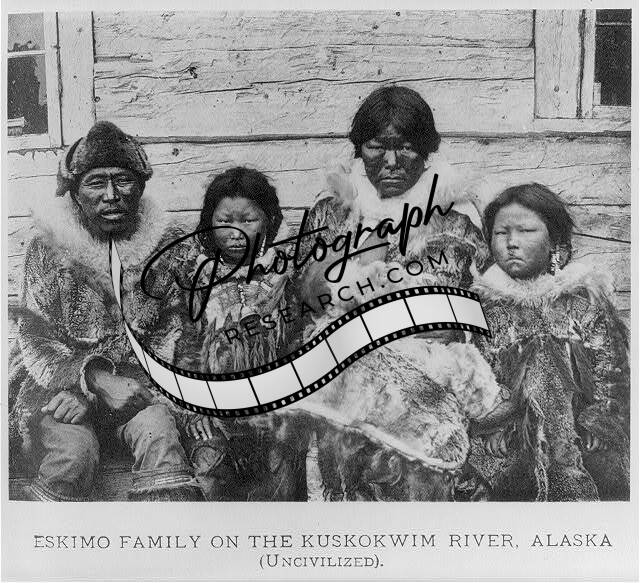 Eskimo Family,front of house,Kuskokwim River,Alaska,AK,uncivilized family,1886