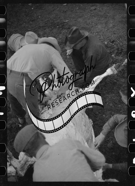 Butchering a cow,Quarter Circle U Ranch,Montana,MT,Farm Security Admin,FSA,1
