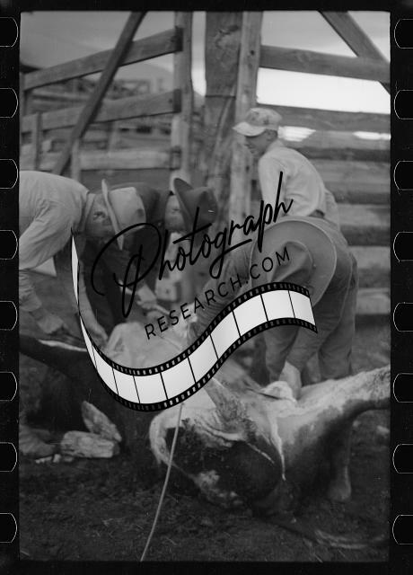 Butchering a cow,Quarter Circle U Ranch,Montana,MT,Farm Security Admin,FSA