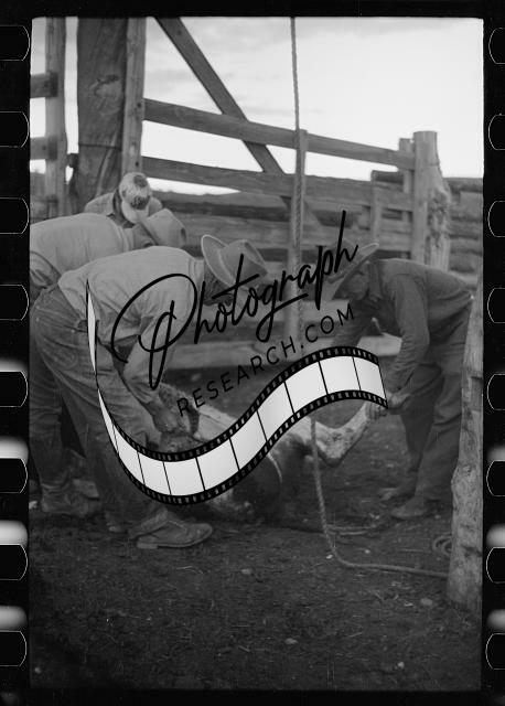 Butchering a cow,Quarter Circle U Ranch,Montana,MT,Farm Security Admin,FSA,2
