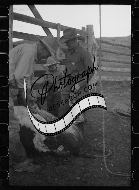 Butchering a cow,Quarter Circle U Ranch,Montana,MT,Farm Security Admin,FSA,3