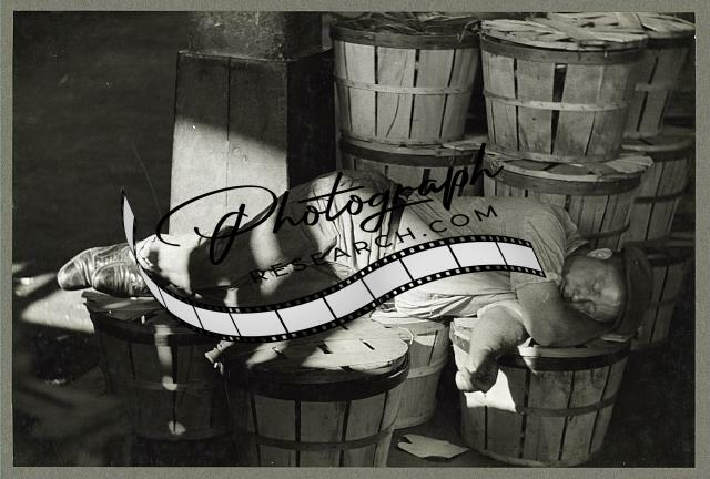 Man sleeping in fish market,Baltimore,Maryland,MD,Farm Security Admin,FSA