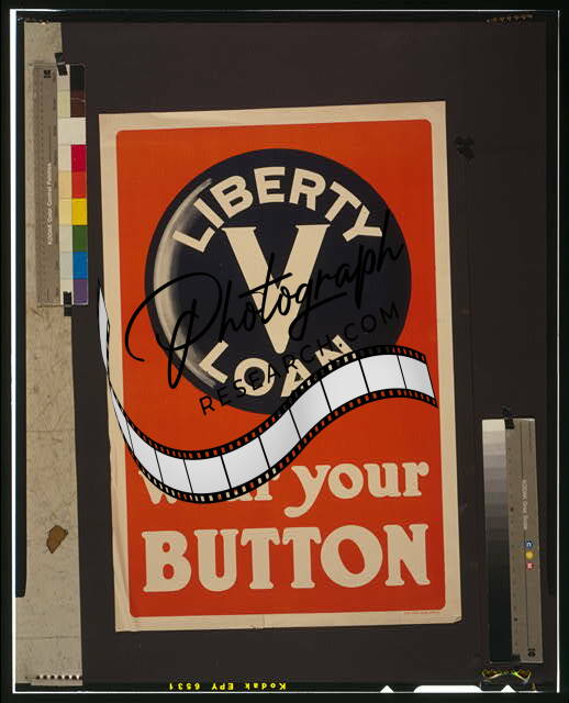 Wear Your Button,Liberty Loan,1917,War Poster Photo,WWI,Victory Sign,World War