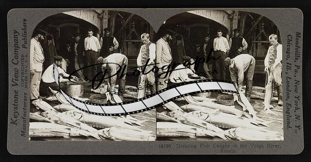 Dressing fish caught in the Volga river, Russia