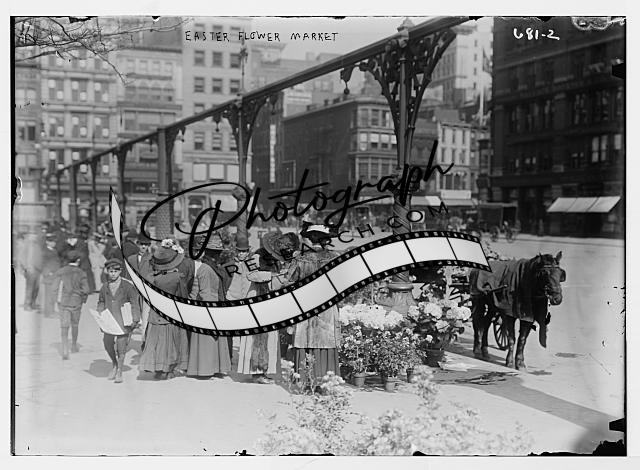 Shoppers at Easter market,Union Square,New York,NY,children,flowers,horse
