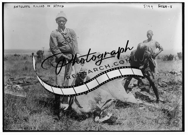 Antelope killed,animals,hunting,safari,men,Africa,portrait,Bain News Service
