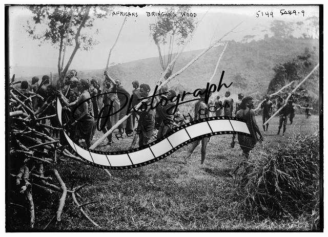 Africans bringing wood,lumber,timber,trees,groups,laborers,Bain News Service