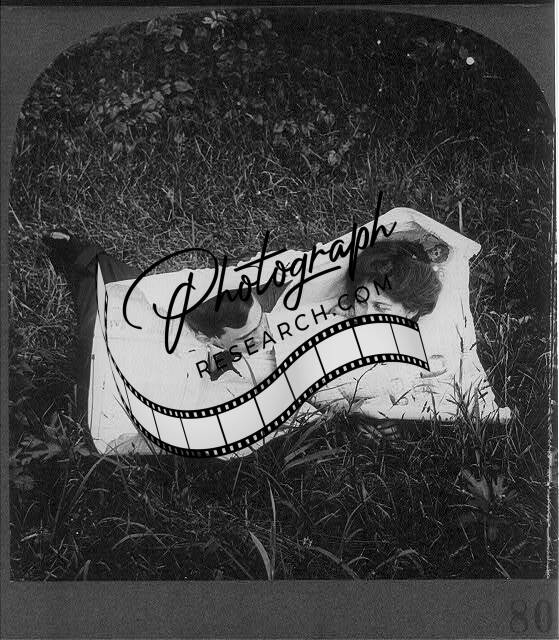 A glance through the news,c 1906, couple laying in grass,cuddled in newspaper