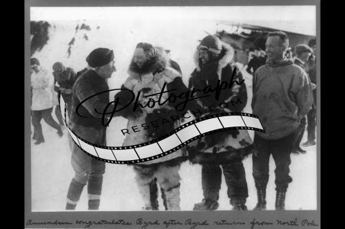 Amundsen congratulates Byrd,return from North Pole,King's Bay,Spitzbergen,1926