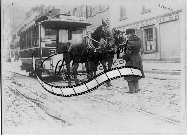 House Car,New York,N.Y.,1908,conductor watering horses,New York City,NYC