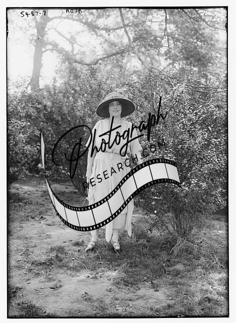 Alda,outdoors,women,plants,trees,hat,dress,portrait photograph,Bain News Service