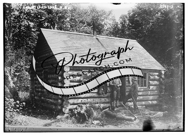Log Cabin,Long Lake,N.B.,New Brunswick,two men,wooded area,Bain News Service