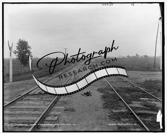 Track straightening,crossings,railroad construction,Coal City,Illinois,IL,1900