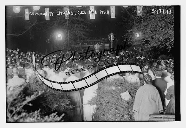 Community Chorus,Central Park,night time,lights,people,Bain News Service