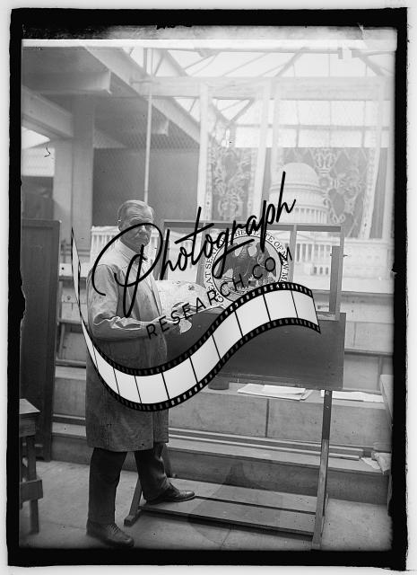 C.E. Moberly,Capitol artist with great seal of New Mexico,1925,National Photo ,1