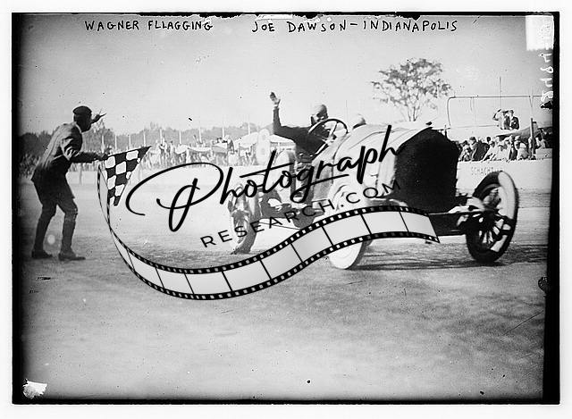 Wagner Flagging Joe Dawson,Indianapolis 500,1912,finish line,winner,auto racing