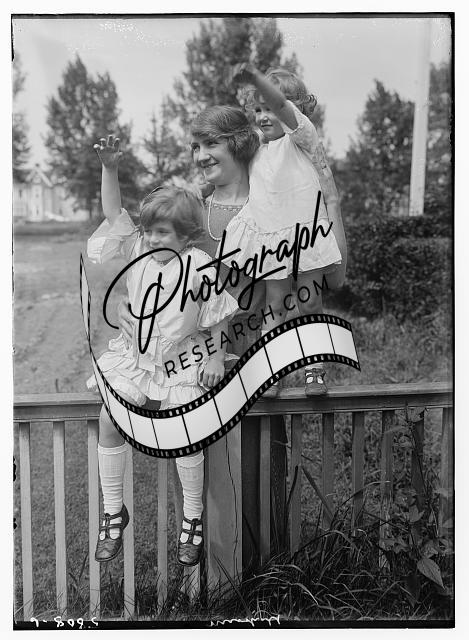 Mrs. Marshall,children,families,mother,waving,daughter,railing,Bain News Service