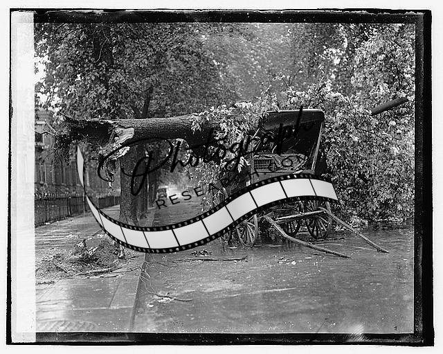 Wagon hit with fallen tree,accident,disaster,1922,transportation,wreck