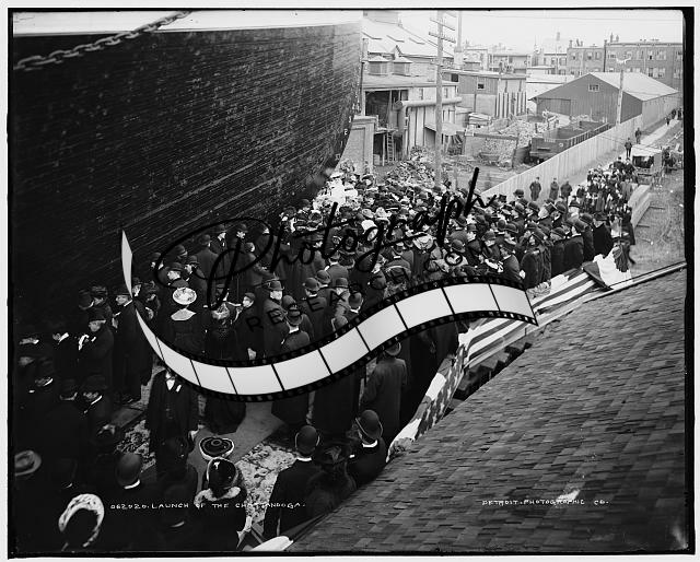 Launching,Chattanooga,steamers,boat,ship,crowd,buildings,Detroit Publishing,1900
