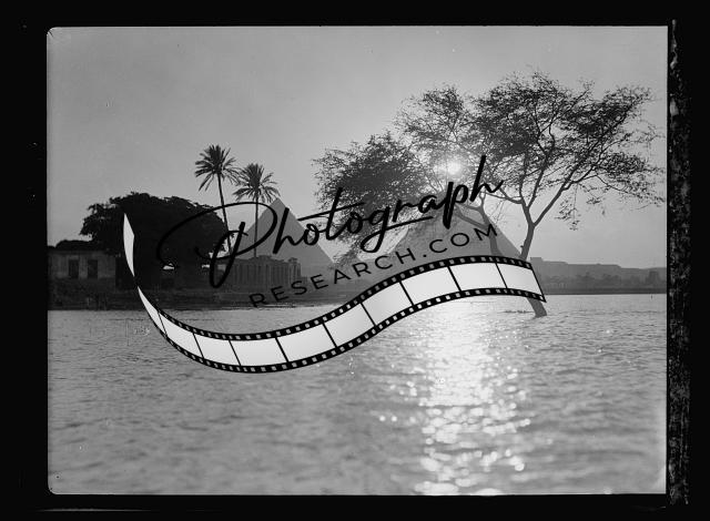 Pyramids at Sunset,Cairo,Egypt,Flood time of the Nile River,American Colony