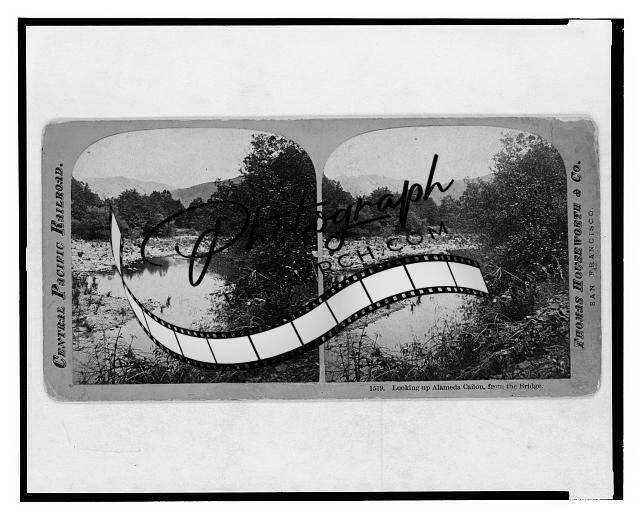 Central Pacific Railroad,Looking up Alameda Canyon,bridge,c1870,California,CA