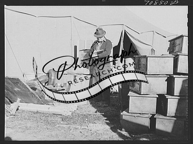 Title: Checking in equipment from FSA (Farm Security Administration) mobile camps as it arrives at the FSA permanent camp at Caldwell, Idaho