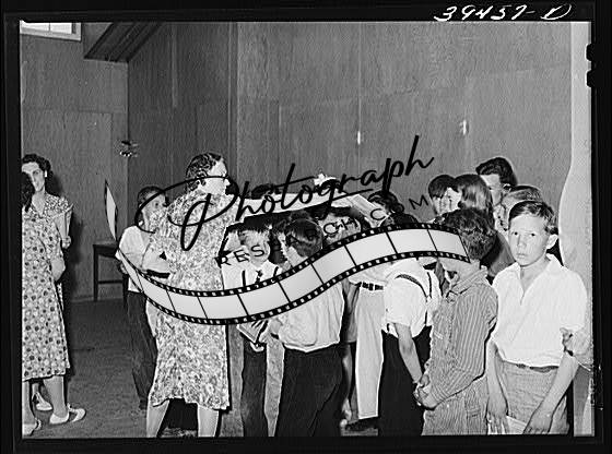 Title: Schoolchildren watching the program given at the end of the school term. FSA (Farm Security Administration) labor camp. Caldwell, Idaho