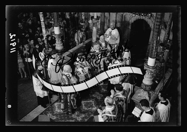 Title: Calendar of religious ceremonies in Jer. [i.e., Jerusalem] Easter period, 1941. Palm Sunday blessing palms by Polish Bishop Excellence Karol Radonski