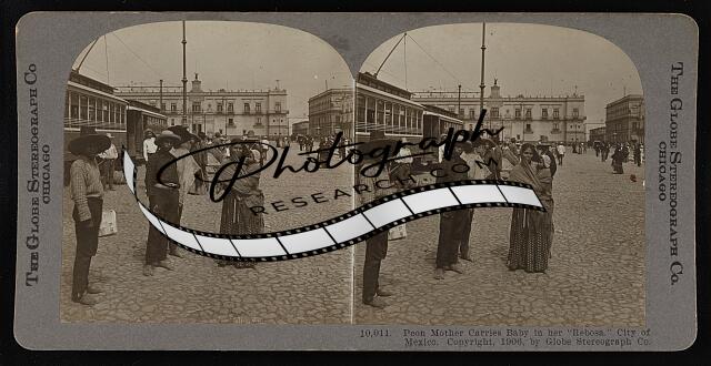 Peon mother carries baby in her "rebosa." City of Mexico