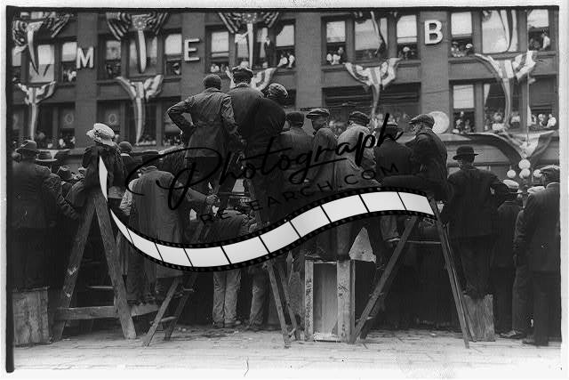 Crowd,people watching parade,ladders,spectators,flags,Buffalo,New York,NY,c1917