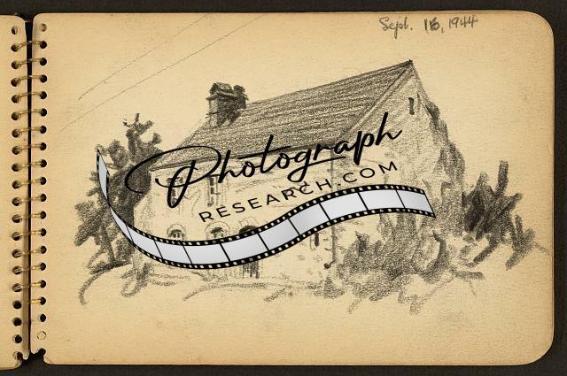 House,homes,buildings,civilians,travel,sketches,Manche,France,V Lundy,1944