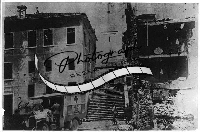 Ambulances,Personnel,Italy,American Red Cross Ambulance,bombed out building,WWI