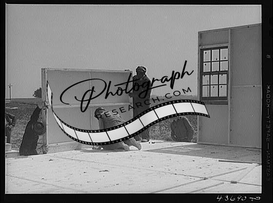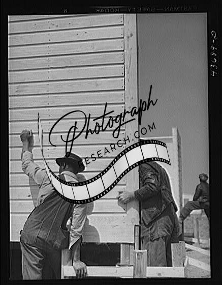 Title: Putting up a wall in one of the prefabricated houses being built at Pacolet, South Carolina for farmers moved out of Camp Croft area