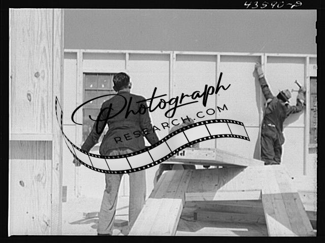 Title: Putting up an inside wall in prefabricated houses for farmers moving out of the Camp Croft area. Pacolet, South Carolina
