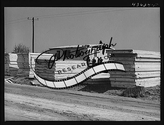 Title: Building the foundation for a prefabricated house that FSA (Farm Security Administration) is putting up to house some farmers who had to move out of the Camp Croft area region