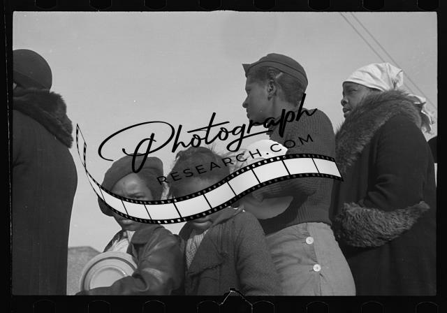 Title: Negroes at mealtime in the flood refugee camp, Forrest City, Arkansas