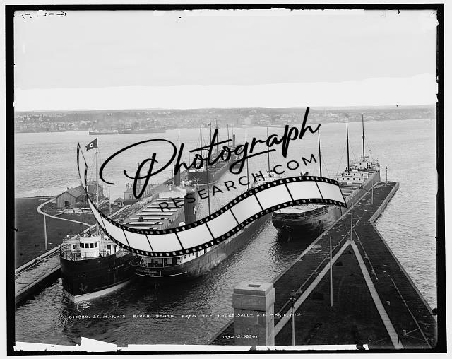Saint Mary's River south,locks,piers,docks,Sault Stephen Marie,Michigan,MI,c1905