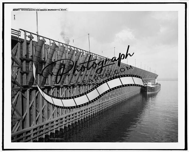 South Shore ore docks,piers,cargo ships,wharves,docks,Marquette,Michigan,MI,1910
